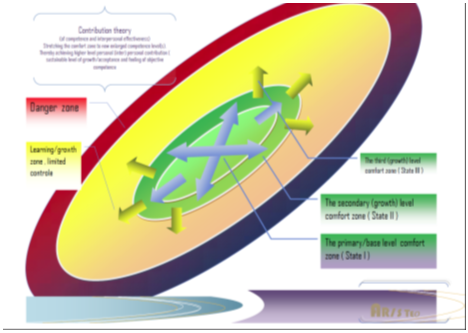 Wat de essentie van de contributie hypothese is, is dat de individu door steeds nieuwe ervaringen op te doen, zich in alle richting blijft ontwikkelen en dus als mens groeien - het vergroten van het menselijke/humane kapitaal - Wat zich uit in een steeds grotere ervaren competentie niveau -die zich ook daadwerkelijk objectief verifieerbaar manifesteert. Als gevolg van dit fenomeen zal de initiele basis/0-status domeinen competentie index/agglomeraat ( Comfort Zone ) een duurzame stretch maken naar nieuwe domeinen ( sociaal, intellectueel, motorisch, fysiek ). Een proces dat vergeleken kan worden met de inktvlek strategie.
